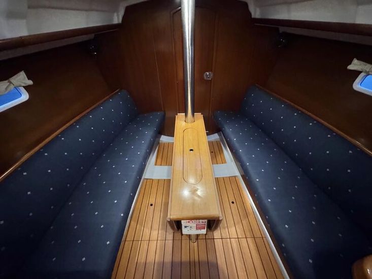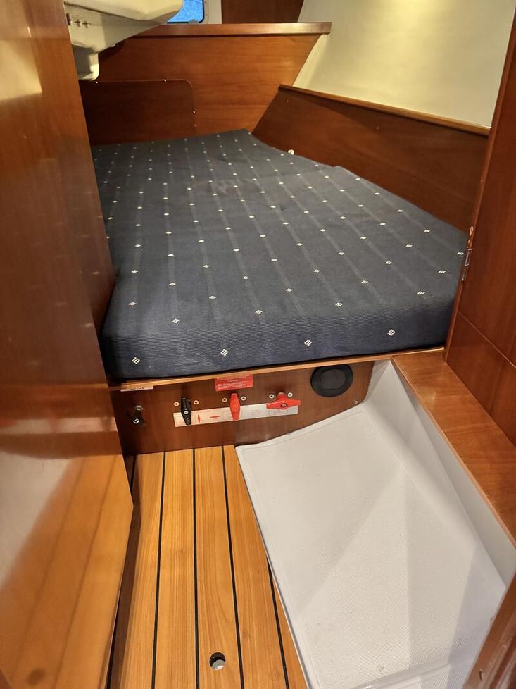 Forward cabin: double V-berth with storage. Aft cabin: private double berth. Saloon: 2 single berths converting from settees.