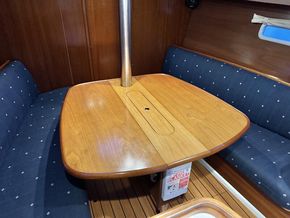 Lewmar Pro 1000 electric anchor windlass (new 2024, remote operated). Main anchor with 20m 6mm chain and 26m 12mm warp (shackle and swivel replaced 2026). CQR kedge anchor. Teak cockpit table (removable, fitted 2021). Canvas sprayhood (new 2022, cleaned and re-fitted 2024). Full cockpit enclosure with curtains (new 2022). Stack Pack by Cover to Cover (serviced 2026, zip re-stitched). Full set of stainless steel guardwires with drop gates. Stainless steel pulpit and pushpit. Transom boarding ladder. Full set of warps and fenders (bow lines replaced 2022, 12mm x 10m). Bombard Max 3 Aero inflatable tender.