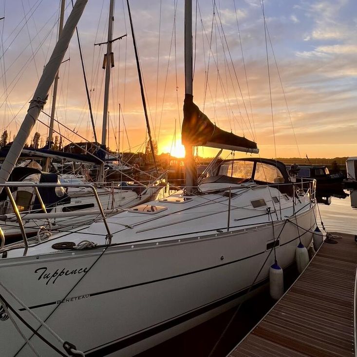 "Tuppence" has been meticulously maintained and extensively upgraded throughout, with significant investment in recent years including a comprehensive engine service (February 2026), new Lewmar Pro 1000 electric windlass (2024), standing rigging replaced (2018, Holman Rigging), Coppercoat antifouling (2018), Raymarine electronics, Eberspacher D4 diesel heating, new sprayhood and full cockpit enclosure (2022), and all running rigging renewed (2022).