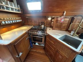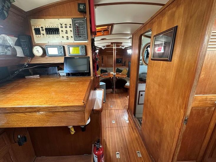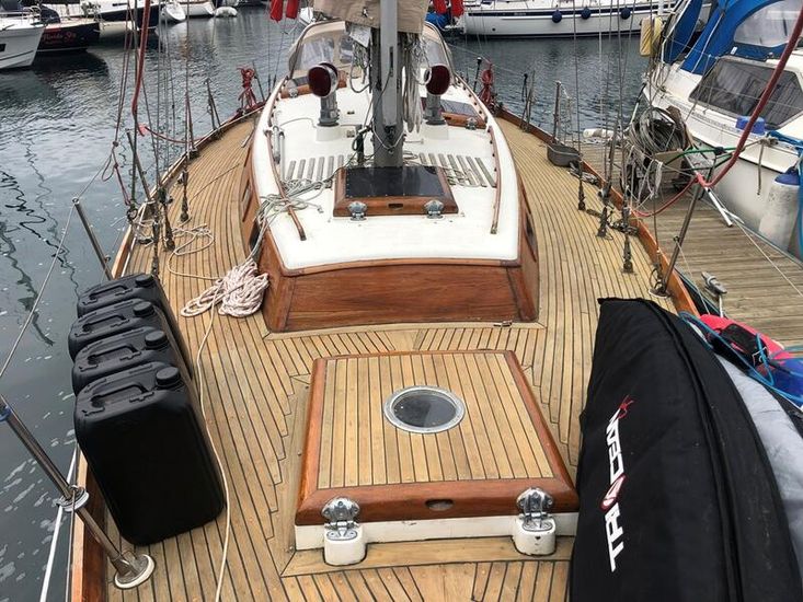 Sharifa is a classically designed Cheoy Lee Offshore 41 Custom Ketch, built in Hong Kong in 1979 based upon tried and tested ocean going lines. The “Custom” designation means that owners could add many extras to the basic specification, so the interior enjoys a very lavish use of solid teak and teak veneer throughout the accommodation as well as other detailed refinements. Sharifa was launched in Hong Kong by the first owner who then shipped her to the UK.