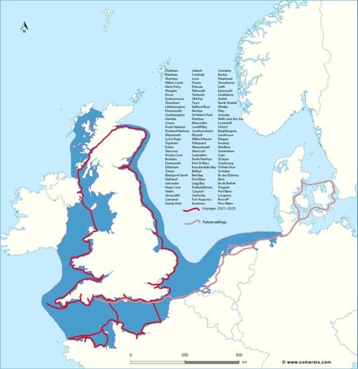 She has been operated commercially for seven years; providing summer sailing holidays around the coasts of UK and near continent for 6 passengers at a time and on-board dining for up to 24 covers in Exeter Canal basin in the winter. During this period she has sailed commercially around the UK visiting all four capital cities and 60 different ports and anchorages; sailed around the Channel from Scillies to Dover, Dieppe to Roscoff and the Channel Islands.