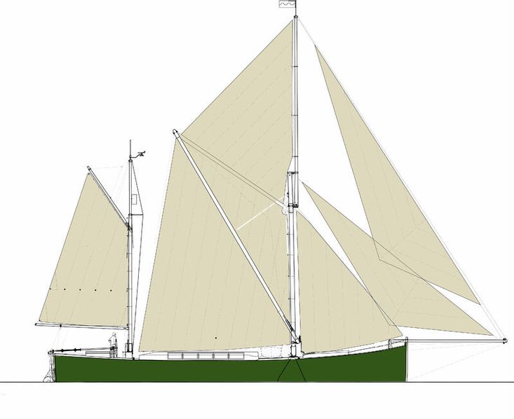 • Sprit sail ‘Muley’ configuration with bow sprit.