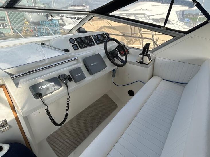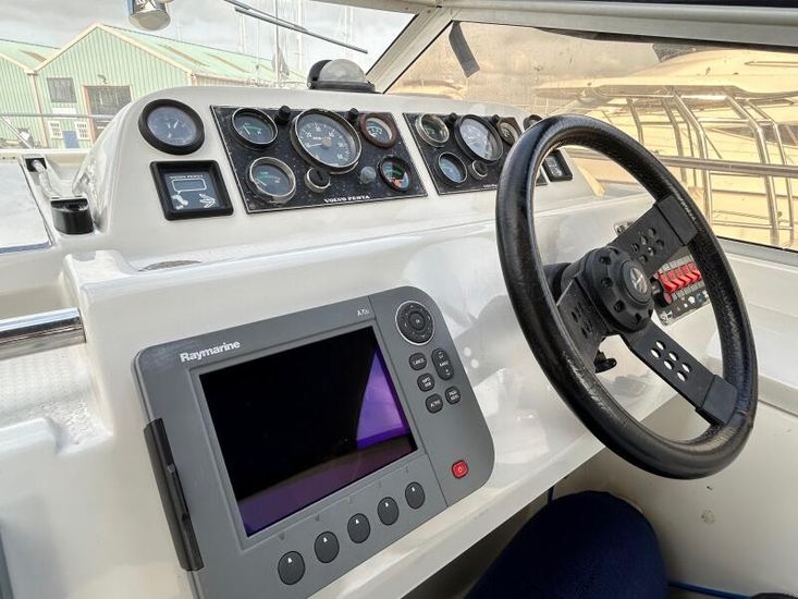 FAIRLINE TARGA 27 - Circa. 1989 - Powered by twin Volvo 205hp petrol's through sterndrives - 4 berth accommodation with electric flush W/C and shower - Specification to include; Electric windlass, trim tabs, shore power supply with battery charger, immersion and 240v sockets, Raymarine A70 GPS, VHF, Speed & depth, trim tabs. A very well presented, well kept Targa 27!. For more information please call Boats.co.uk on 01702 258885 or email sales@boats.co.uk
