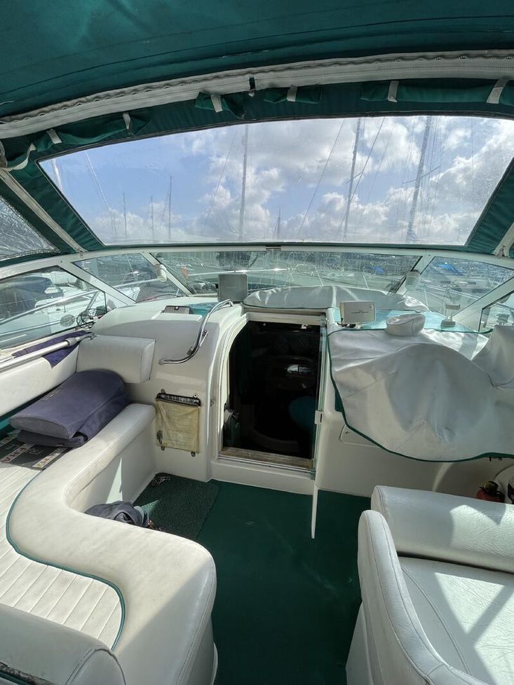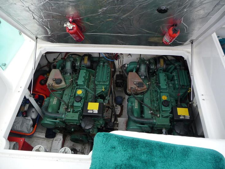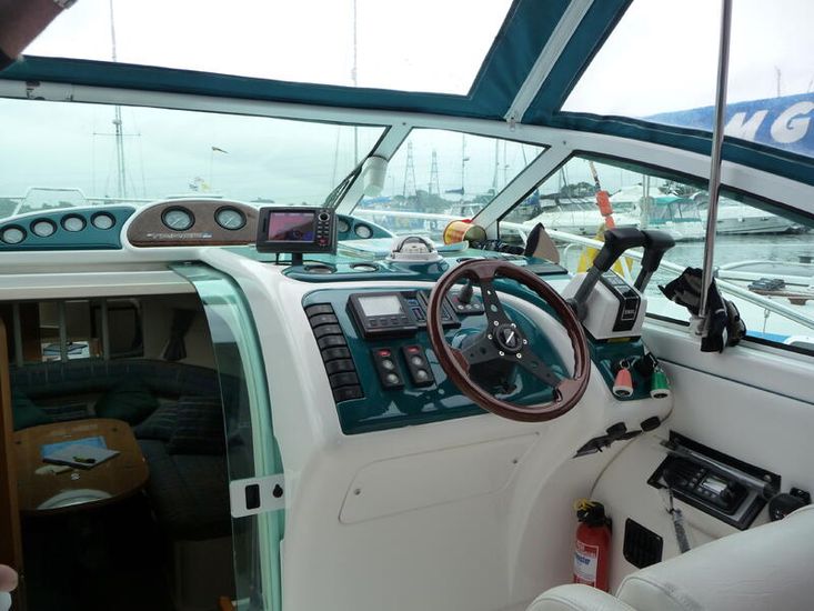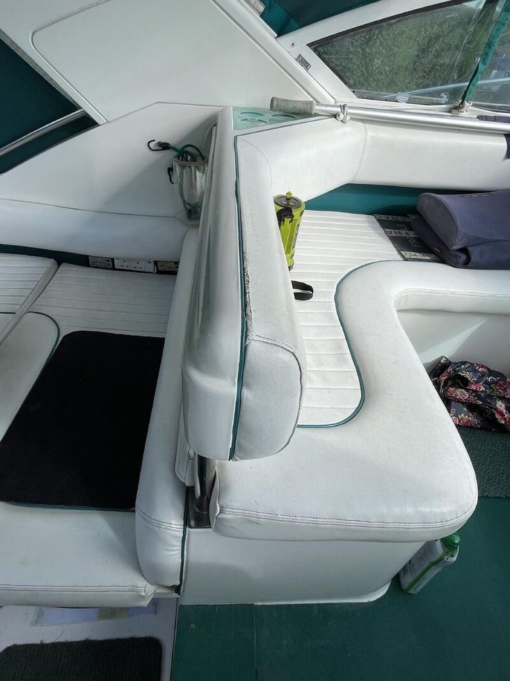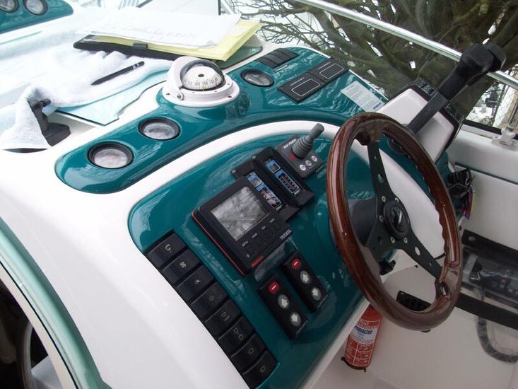 An amazing Aqua /Turquoise colour really differentiating it from the crowd. Sleek and stylish design, the Fairline hull offers a perfect blend of speed, agility, and ride comfort -it features a Coppercoated bottom for low maintenance. The spacious cockpit has a hull matching canopy and white trim upholstery.
