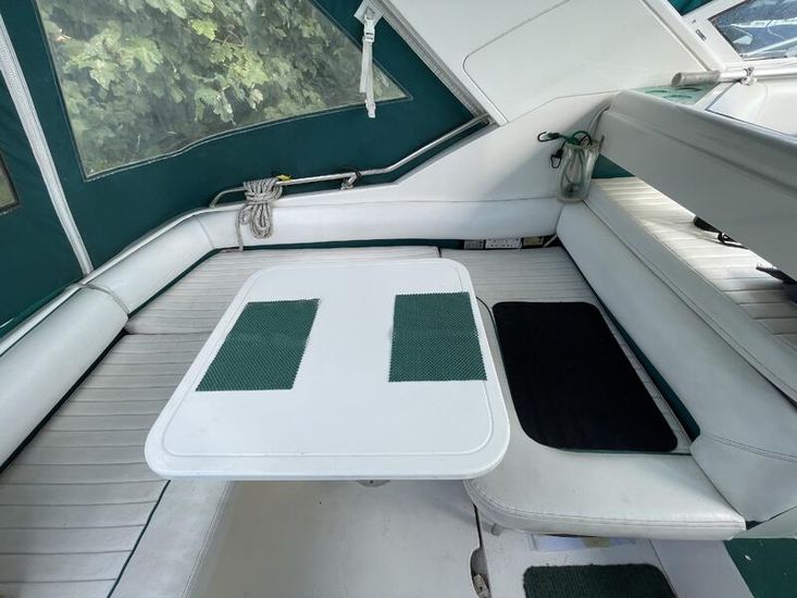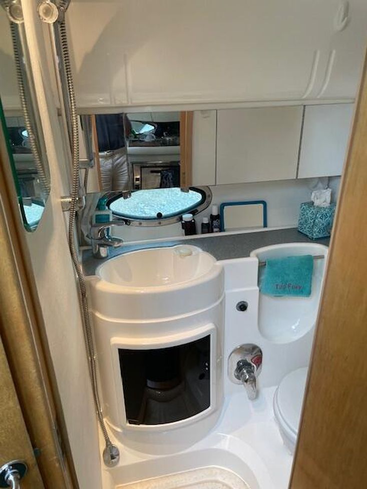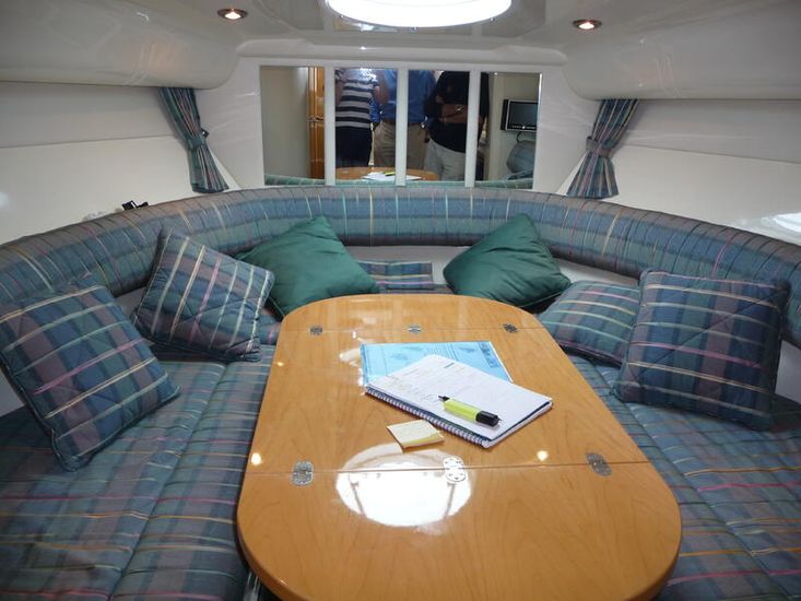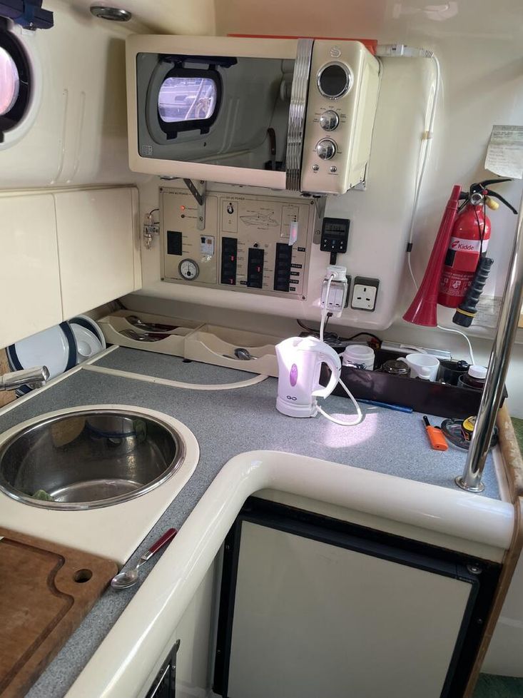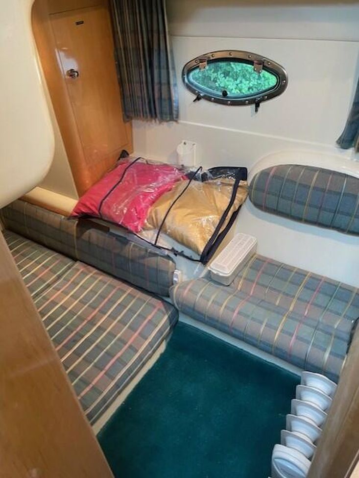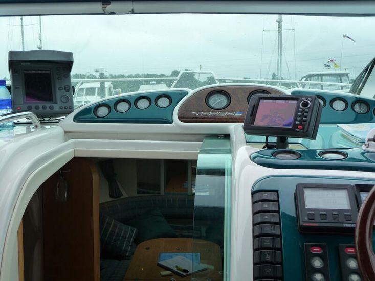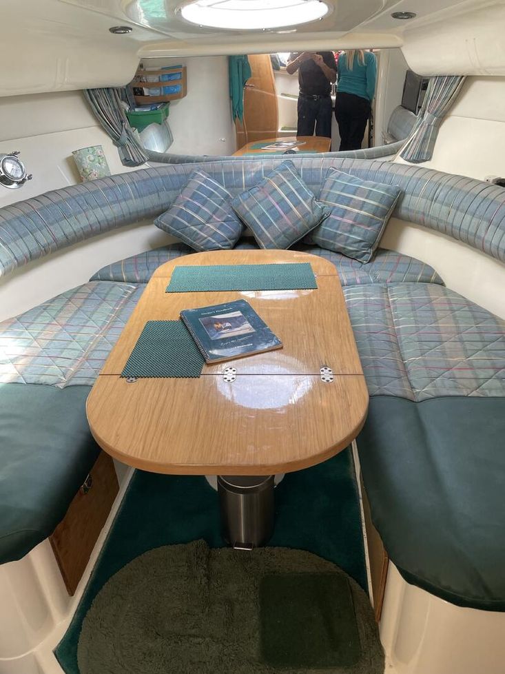 Below deck, the saloon trim is the original expensive showboat material which is continued on to the double aft cabin. A fully equipped galley has both gas and a microwave. Modern electric heads, ensure a comfortable and enjoyable stay onboard.