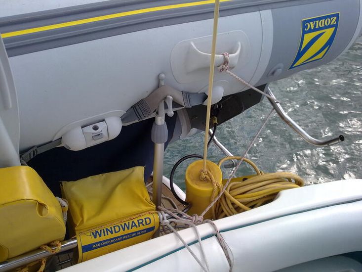 Dan Buoy, Thrown Sling, Horseshoe, DSC-VHF, Emergency procedure charts, Fire extinguishers in green,Halon engine and fuel tank automatic extinguishers