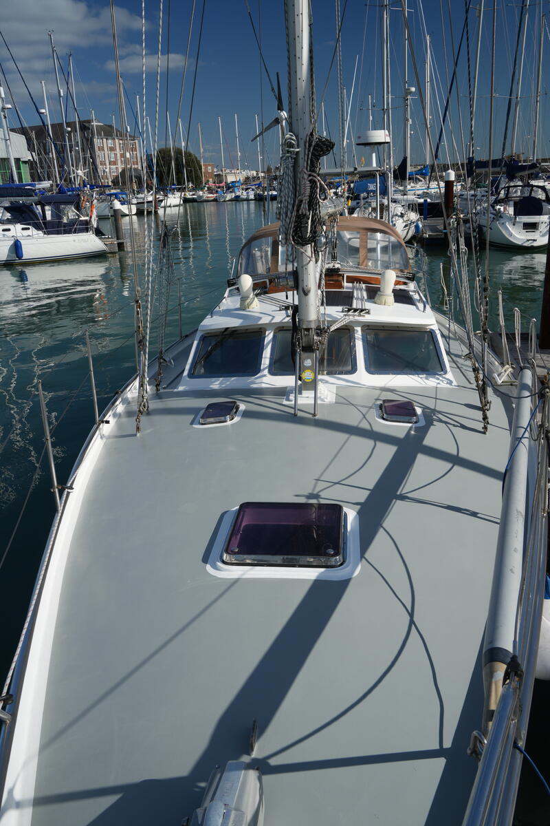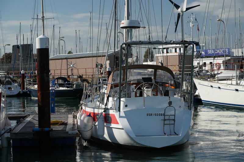 I bought her in early 2012, although German registered she was in a boatyard in Portugal from where I sailed her back to Portsmouth. We have had many adventures in her along the South coast of the UK and North coast of France but we are getting no younger and are now looking at a camper van instead.