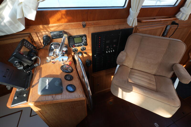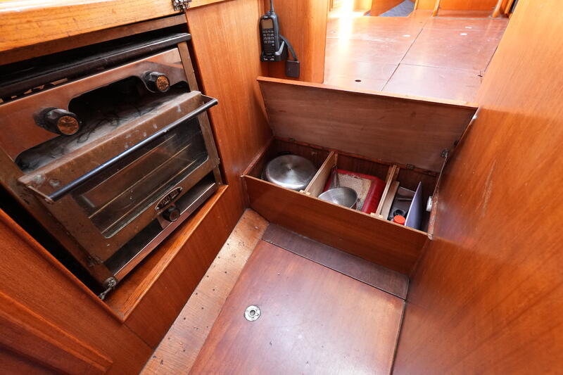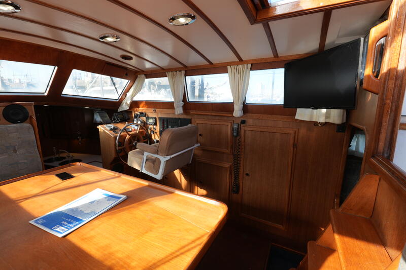 The pilothouse seating area can be converted into additional berths. There is a vast amount of storage areas in the pilothouse.