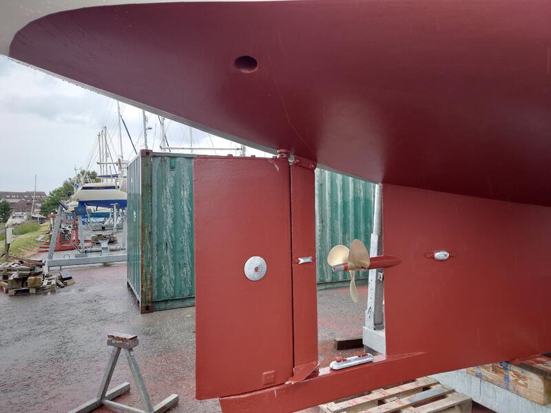 The steel hull was built by Feltz, Hamburg, Germany in 1993. It was then fitted out by an individual (also in Germany) and launched in 1996. It is obvious from the round bilge construction, T section framing and stringers (instead of the normal flat bar), twin skin Rudder etc that it was built by a professional ship building company whose main construction material is steel.