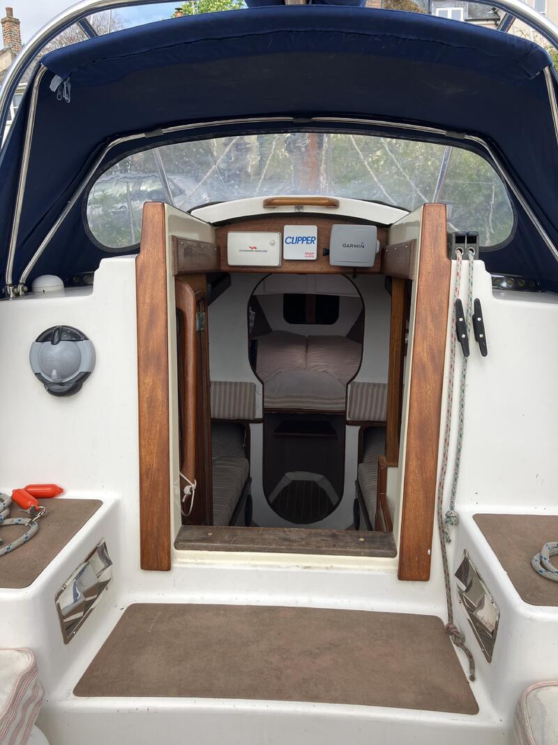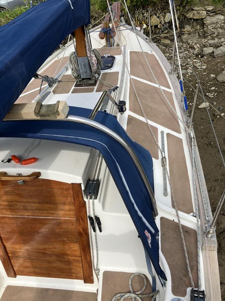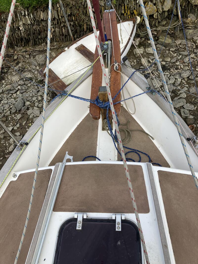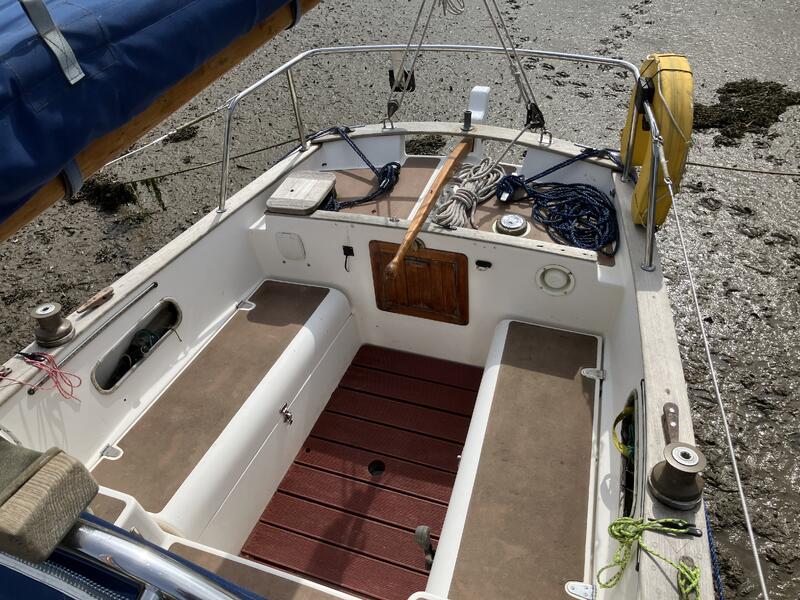 A robustly built GRP pocket cruiser certified to Offshore Category B from the same designers as the Fisher motorsailers. Yarmouth 23’s are capable boats with at least one Atlantic crossing (see references). The long keel 2.5 tonne hull gives a stable motion and I have thoroughly enjoyed day sailing her around the Falmouth/Helford area for the last 8 years with the occasional overnight up one of the creeks.