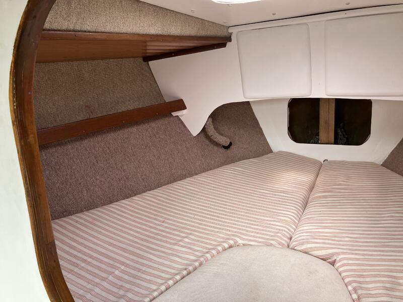 Charlotte Rose differs from most other Yarmouth 23’s because she has bilge plates (fitted by the original builder Yarmouth Marine Services) which allow her to take the ground easily and upright. She is also white (most are dark colours) and has circular (not oval) windows which I think looks better..