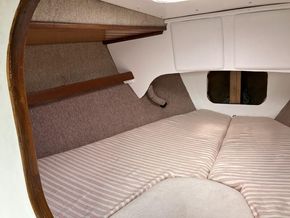 Settees (port and starboard) are also single berths, they extend through the forward bulkhead and under the V berths in the bow to give full length for sleeping