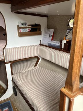 Saloon with moveable table for drinks/meals/chart table in saloon or cockpit.