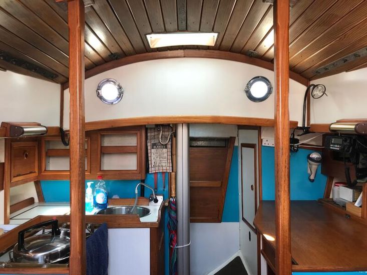 Cabin : two berths, Taylors paraffin stove, stainless steel sink, head, mounted gps and vhf