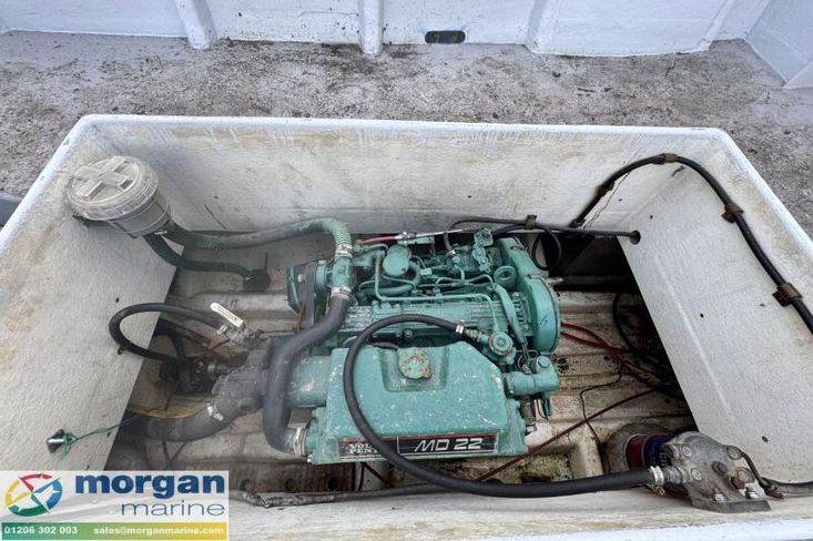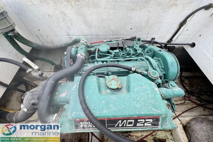 Machinery: Volvo Penta MD22 four-cylinder diesel engine. Lift up lid to access engine.