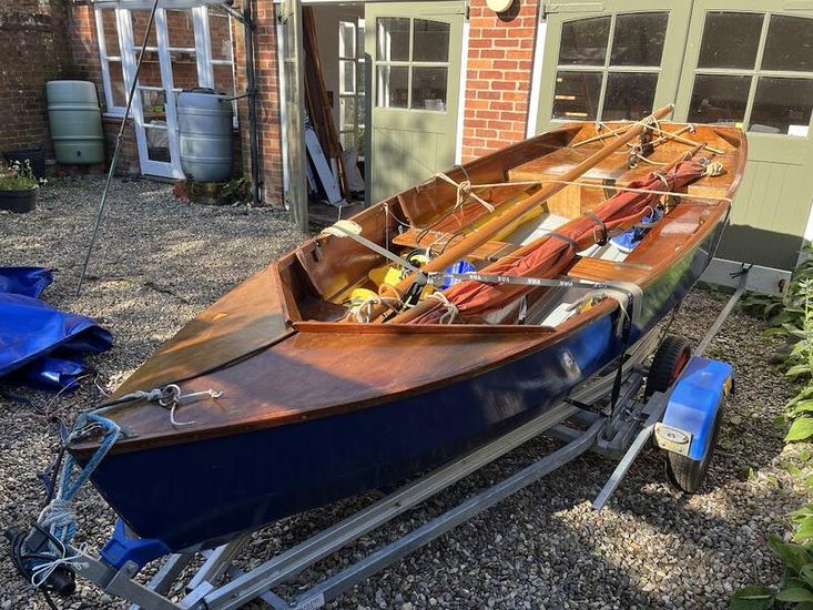 Built in the 1960s by Moore's of Wroxham, bought by current owner three years ago, restored and re-rigged with a balanced lug sail including new mast. Original gunter rig comes with the boat including mast, sails and rigging. Combi trailer and fitted cover both only two years old. Some modifications made in re-build. Includes new buoyancy bags, oars, bailer etc. Ready to go.