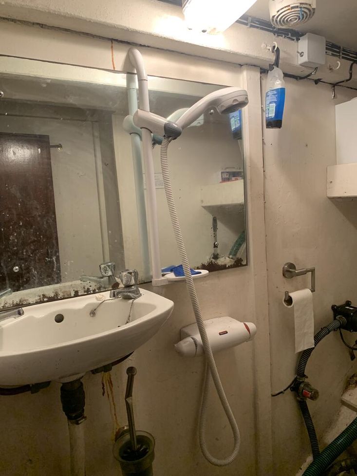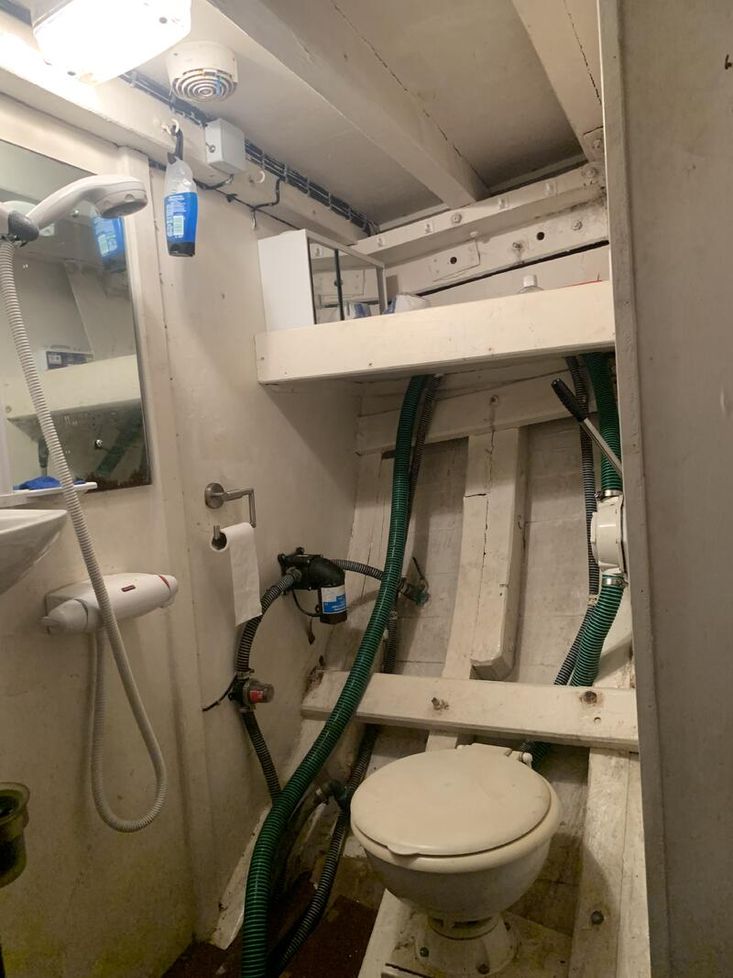 When the engine’s running there’s a remarkably efficient heat exchanger which provides hot water, or if you have access to shore power, an equally efficient immersion heater. A shower drains into a shower tray which is emptied with an electric pump. The toilet is Lavac Marine with recently serviced sea cocks (both in and out), seals and pump diaphram.