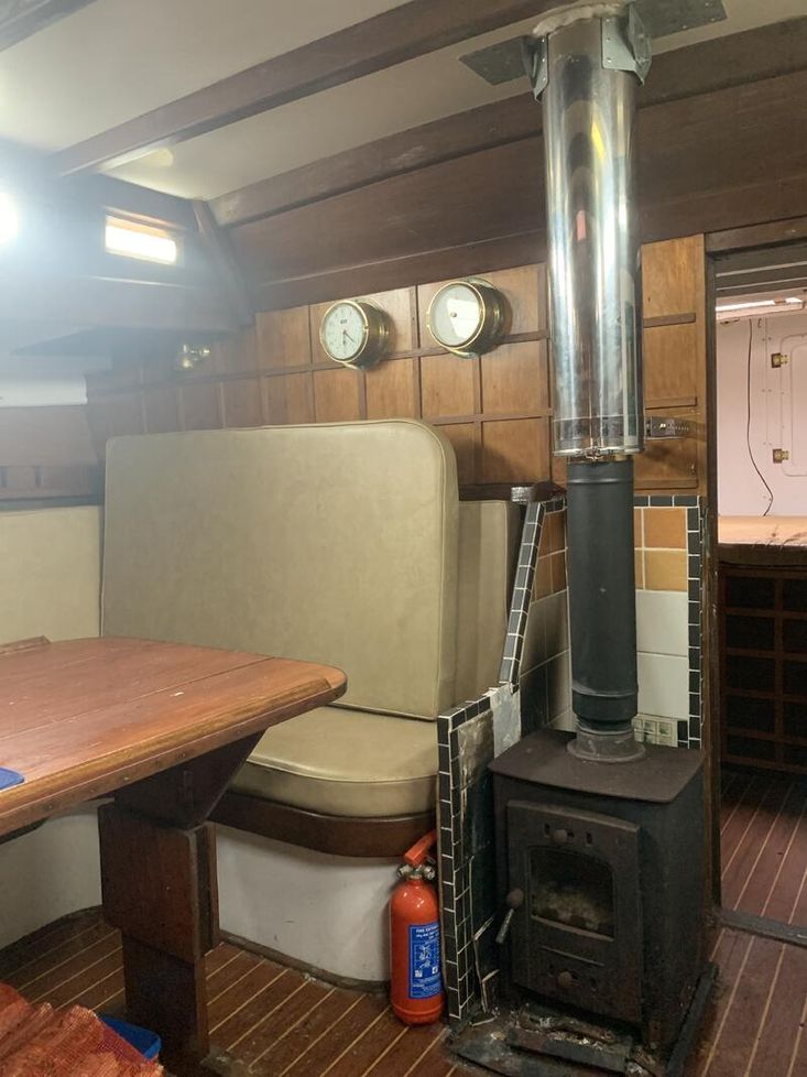 Not long after I bought her, I came to the conclusion that she was over-anoded with the result being some softness around two through-hull anode bolts. I now believe I have the balance correct with just one main and correctly fitted anode on the rudder, and all softness around the old anode repaired. Similarly I’ve repaired a persistent leak that originated at the port bilge keel and St. Nessan is now remarkably dry. I’ve installed a solid fuel (wood or coal) stove fire which is just grand for the cold nights.