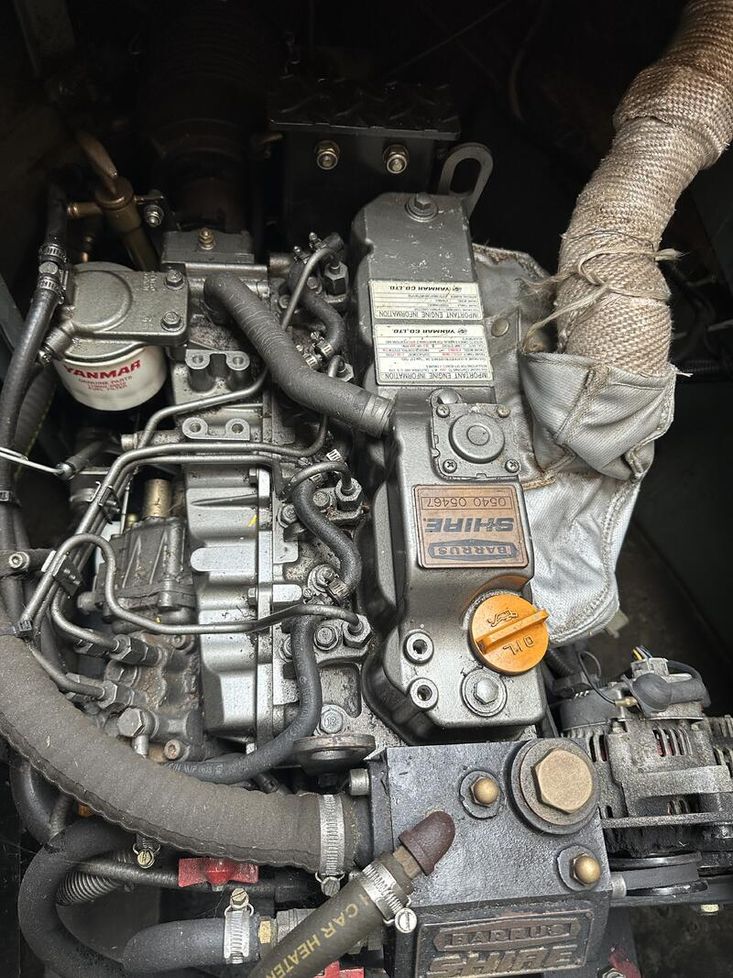 Barrus Shire 40 cylinder diesel engine with PRM 150 2:1 gearbox, 36,9BHP at 3000 rpm. Single lever Teleflex control and cables. Bilge pump, switch and cabling. Stern gear, panel and batteries x 3 and starter. 2 x isolator switches. Serial Number 0540 05467. Serviced on a regular basis: Shire Diesel Engine Oil (10W40), Shire Primary Fuel Filters and Air Filters replaced before the end of 2025, all as recommended by Barrus. Engine has very little hours on it - 1048.6 (as at 3 February 2026).The Eberspacher heating system was checked over by a qualified engineer in 2025 and will be serviced before point of sale.