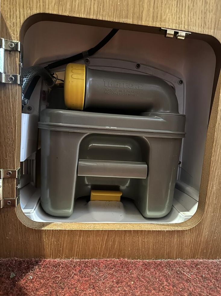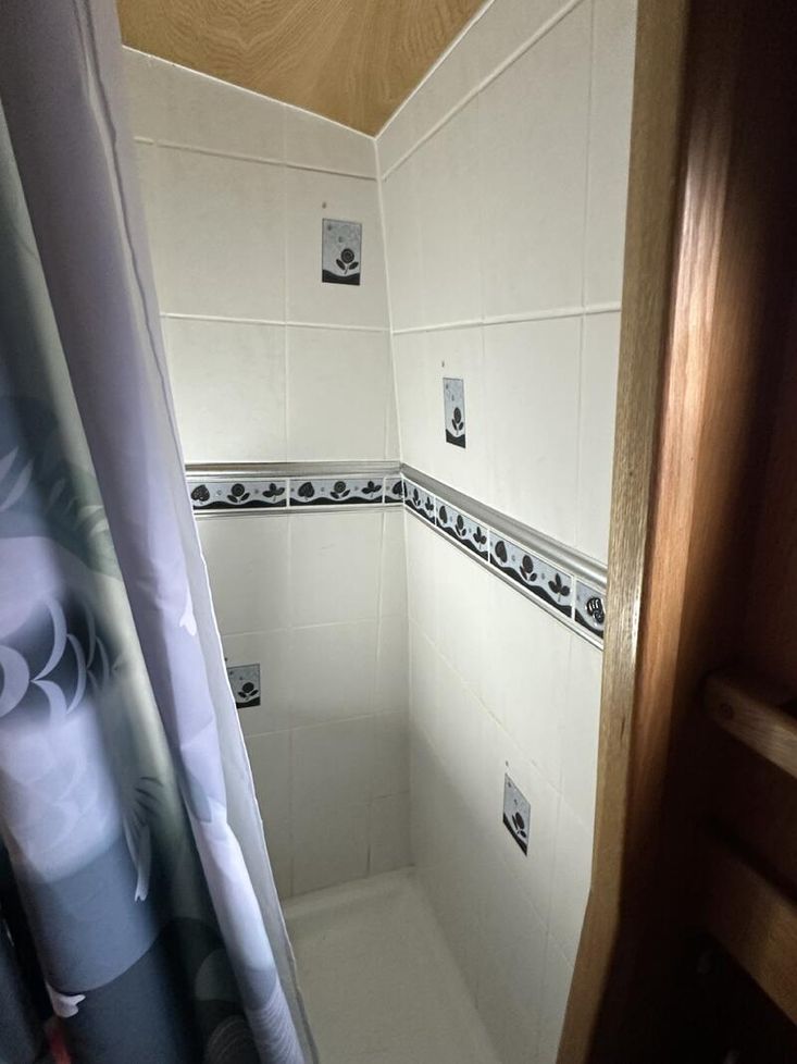 Bathroom/Shower room - 6’ 6” overall length. Amtico flooring and tiled shower room. Shower room is tiled and immaculate with central heating towel rail. Porthole with custom button. Bathroom mirror, Thetford cassette toilet(C-200 CS D3) with two cassettes, negating the need for pump outs. New silver Ibergrif-1 shower riser rail, shower head and hose, shower head holder and soap dish, adjustable shower height. Never been used. Storage under sink. Water has been drained and treated.