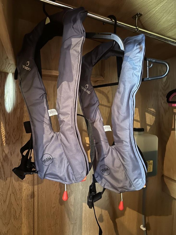 Ash pole, Mohogany pole, metal access gang plank (all bought from Midland Chandlers on 27 November 2020) - all in first-class condition and never really used. Orange safety life ring with solas tape (Midland Chandlers - never used), Riber 20M Throw rope. The boat has 5 mushroom vents (100 dia/2), bow and aft louvre vents. There are three portable Fire Powder fire extinguishers - Salon, Galley and Aft. There is also a fire blanket in the kitchen and Kiddle Carbon Monoxide Alarm in the salon. Two adult self inflating life jackets and available in the rear cupboard.