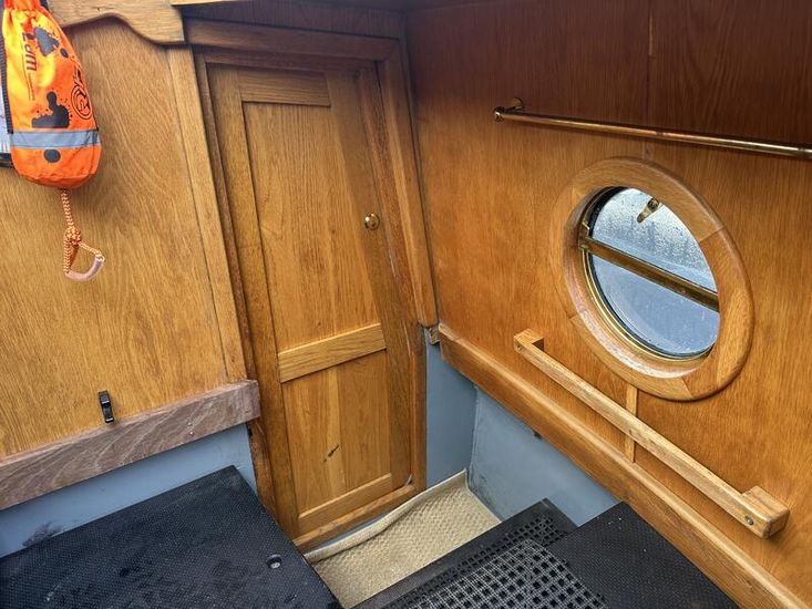 Internal engine/engine bay - two port holes, rear access double door and hatch. Forth Marine textiles canvas cover, engine controls, LED stainless steel engine bay light. Access panels to engine bay. Kingfisher brass tiller and original tiller pin.