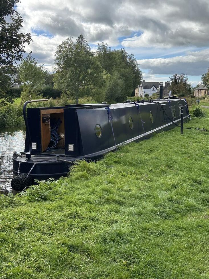 The Declaration of Conformity was signed on 4/04/2006, (a detailed document and operating manual, specifying everything about the boat). The hull length is 16,76m(55ft). Beam 2.08m(6ft 10’’). Design draught 457mm(18”) forward and 558mm(24”) aft (including skeg). A welded steel construction by STS Boats. 10.0mm base plates, 6mm side plates, 5mm cabin side plate and 4mm cabin roof plates. The Boat has been blackened twice in the last five years, the most recent one during the week of 4 July 2024. At this point a new long button rope fender, V Bow fender, turnbuckles and sink plated chains were fitted. New bolts were fitted to the tiller. A comprehensive file of photographs are available before and after the blackening at the Seagull Dry Dock in Ratho. All six magnesium anodes, above required specification have been fitted and the boat has been given the once over by a local marine engineer, who has said he is impressed by the condition of the steelwork. The sellers would be happy for the boat to be examined by an external surveyor, if required.