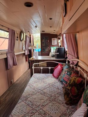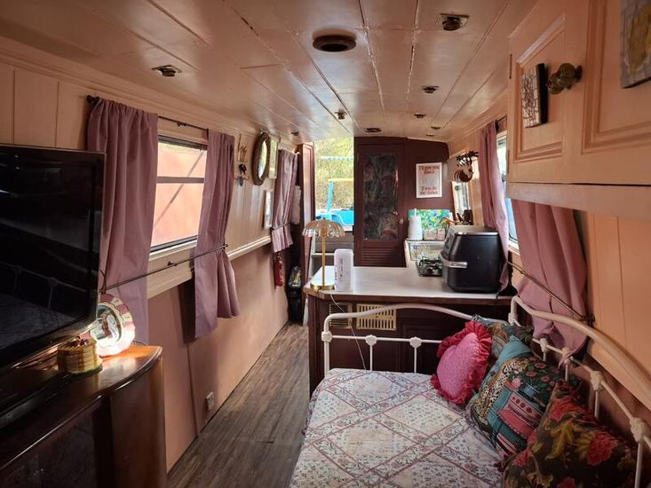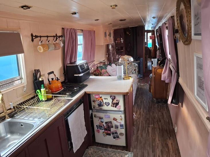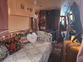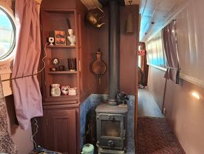 About this Boat: A charming and homely 50ft cruiser narrowboat, featuring a coveted reverse layout. Internal base plate fully treated, re-painted and new flooring laid 2023/2024. Blacked in 2022 and full survey completed in 2024. With 12v, shoreline hook up and a 1000w Prosine Inverter.