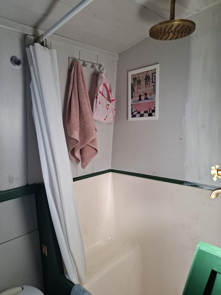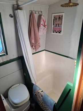 Bathroom Description Cassette toilet, vanity unit, sink, cupboards, hip bath with overhead shower.