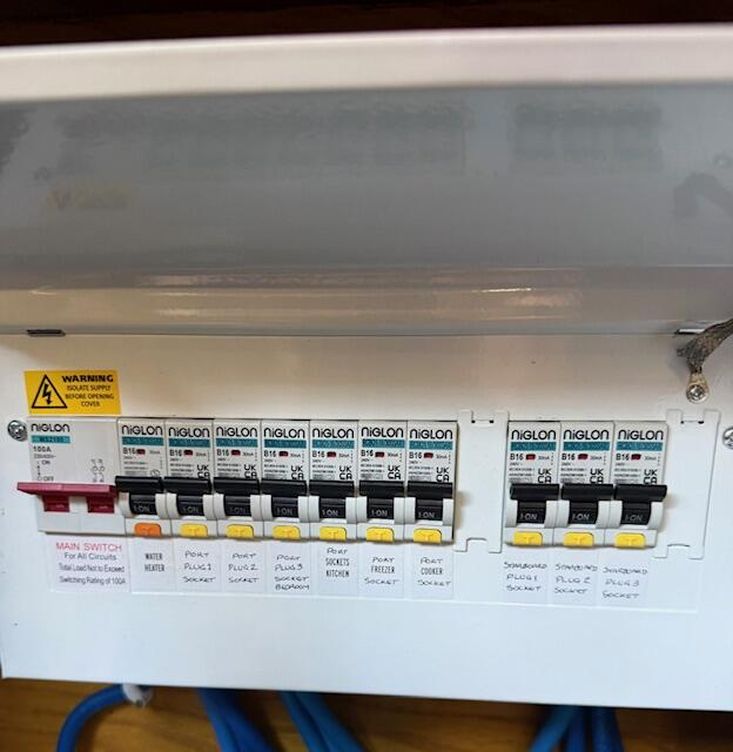 Fully rewired to latest house specification with fuse board and fuses for separate areas of the boat.
