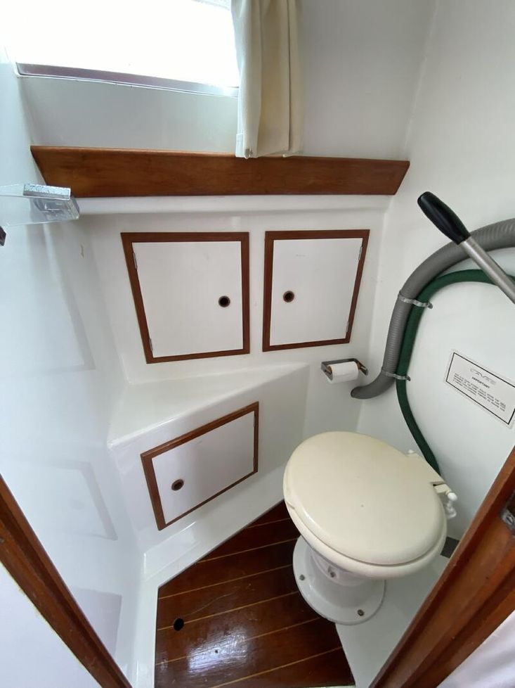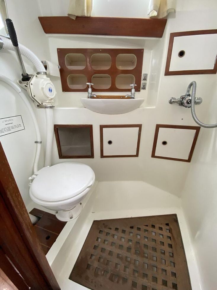 • Aft cabin accessed from cockpit – 2 single berths and small Lavac heads