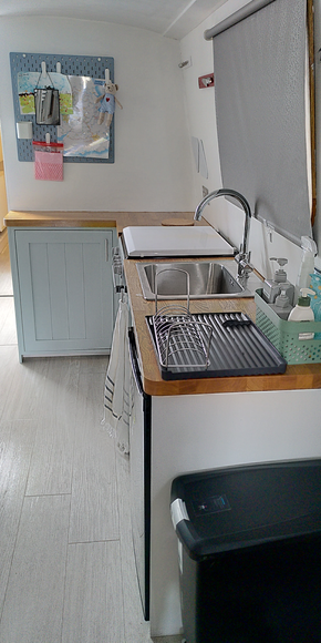 The interior is scandi- minimalist vibes. Think #tinyhome #vanlife #offgridliving