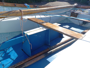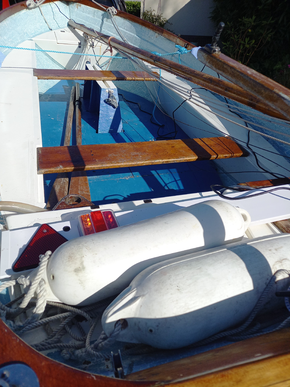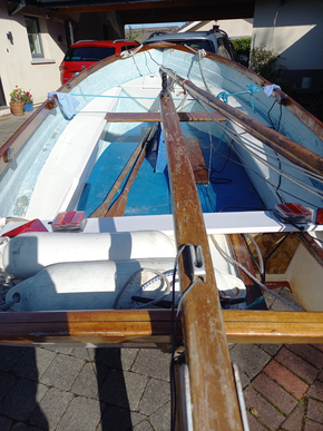 GRP Bass Boat 16 feet long, 2 masts 3 sails, 2021 5hp Yamaha outboard lightly used, 2 wheel galv trailer, center board.