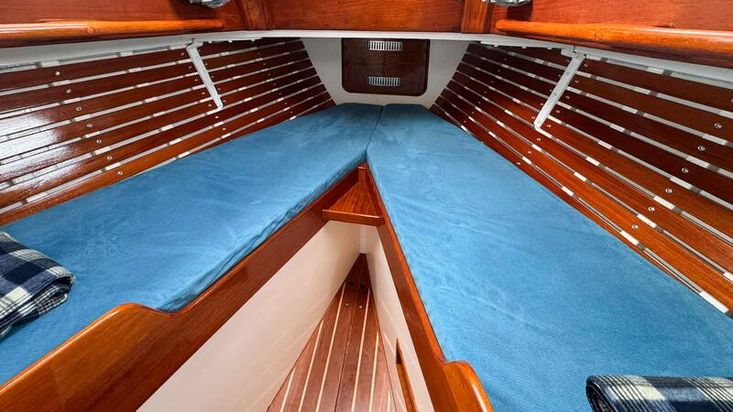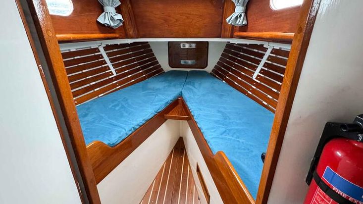 Forecabin with 2 single V-berths, forehatch, and anchor locker