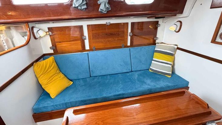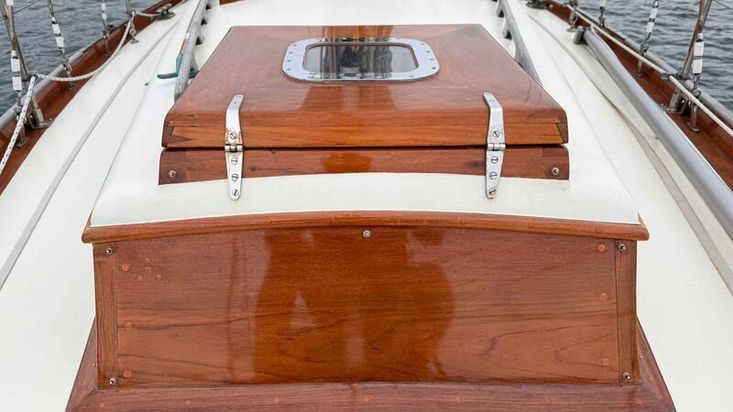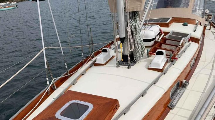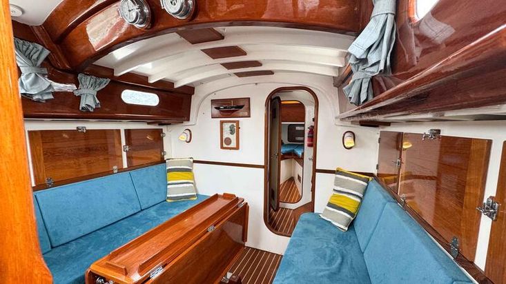 This Alan Buchanan Prior 37 is presented in turnkey condition with continuous maintenance and upgrades: new Vetus M4.15 engine (2022), standing and running rigging (2017), sails (main/Genoa 2017, asymmetric 2017, staysail (2023), digital AIS (2023), and diesel-fired warm air cabin heating (2022). She is a complete, ready-to-sail package, offering both classic regatta performance and comfortable cruising, and has been consistently praised as one of the best-maintained wooden yachts of her era.