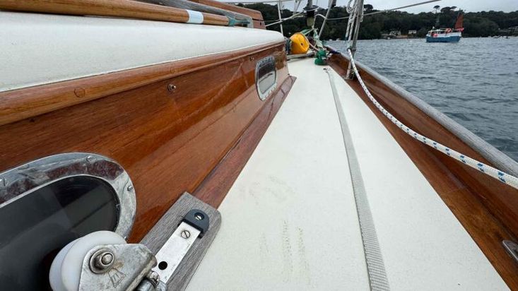 Since the rebuild, the Alan Buchanan Prior 37 has benefited from continuous maintenance and sensible upgrades. She has been widely praised as one of the best-maintained wooden yachts of her era. Because of this ongoing care, she now presents in genuine turnkey condition.