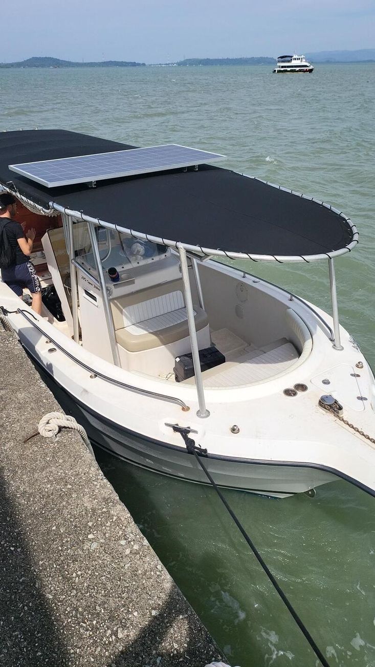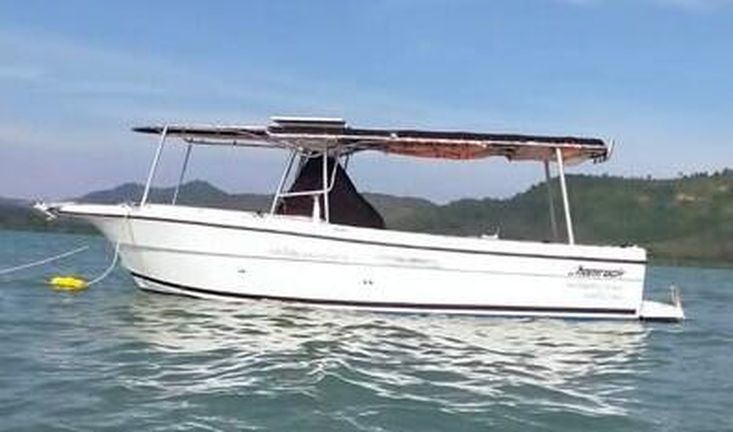Originally built in Florida, USA in 2007. Complete new engine and electrical equipment in 2023. Maximum passengers 10 plus crew 2. Six cylinder in-line vertical water cooled inboard diesel engine. 315 mhp @ 3800 rpm: ca. 360 hours: fuel usage ca. 20 l/hr @ 18 knots. Fuel capacity 550 liters, water capacity 75 liters. Raymarine AXIOM + 12 multifunctional 3D, 600 W sonar, new 05/22. Yanmar instrument/alarm panel new 2023. Toilet, outboard motor mount, solar cells, 220 volt plug. 12 x dive tank holders, dive ladder, lifting arm at stern. Full length canopy, fresh water hand shower, storage lockers. 2 x fenders, fire extinguisher, mooring ropes, anchor (no motor). 12 x safety vests new 2024. Mooring buoy with heavy bottom anchor. Tailor-made trailer with new tyres and springs. Removable stern seat. Trim flaps (not connected)