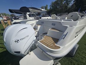 The Special edition version includes Synthetic Teak decking throughout the cockpit including the bowrider section and the bathing platform and steps. The striking special edition graphics set this boat apart.