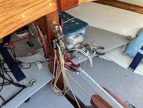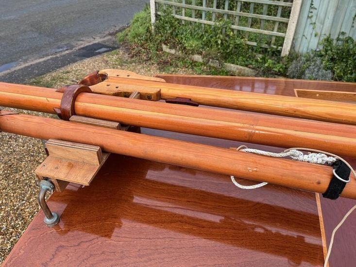 Douglas Fir spars, flexible stainless shrouds and forestay tensioned with lanyards.?Buff-coloured halyards and sheets.